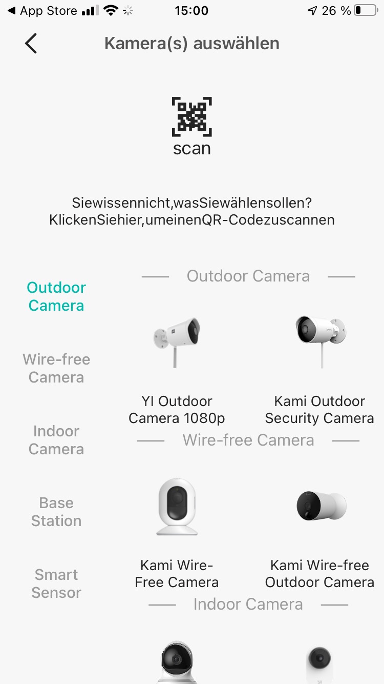 Als erstes muss das Modell angegeben werden. Das geht auch über den Scan des QR-Codes auf der Rückeite.
